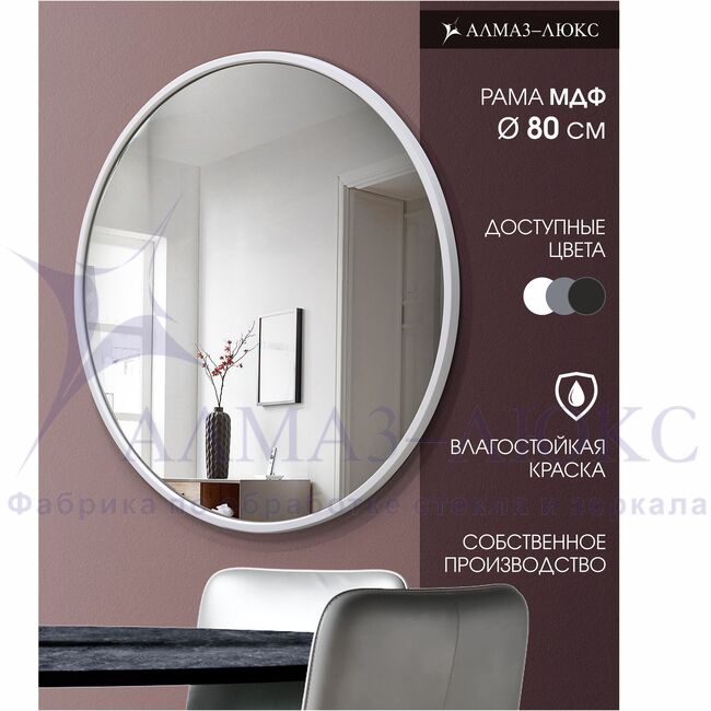 Зеркало АЛМАЗ-ЛЮКС бытовое в раме D800мм (белый матовый)