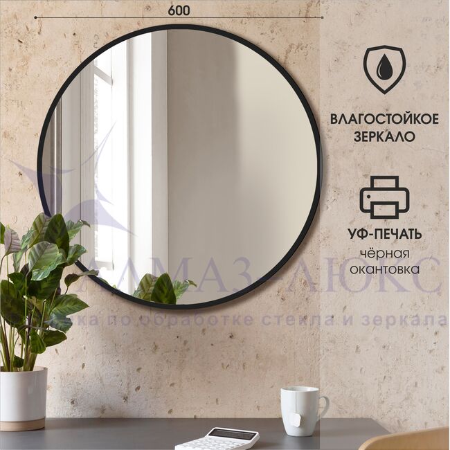 Зеркало АЛМАЗ-ЛЮКС D600 с шлиф.кромкой и УФ-печатью (черный)