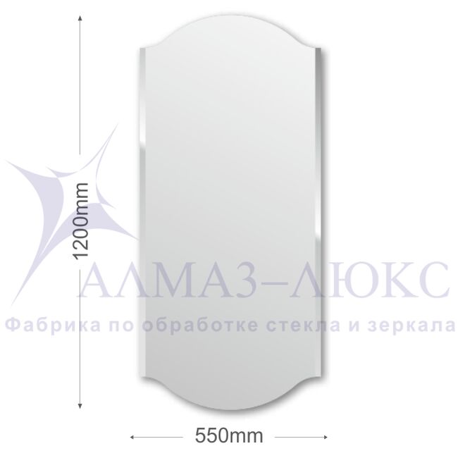 Зеркало АЛМАЗ-ЛЮКС 1200*550 4мм фиг.с част.фацетом и шлиф.кромкой